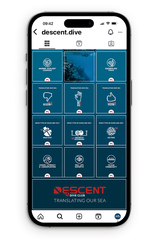 Descent Dive Club no solo enseña a bucear, sino a entender el océano. Su misión es transmitir el conocimiento marino para que más personas puedan descubrir, comprender y cuidar el Mar Rojo.